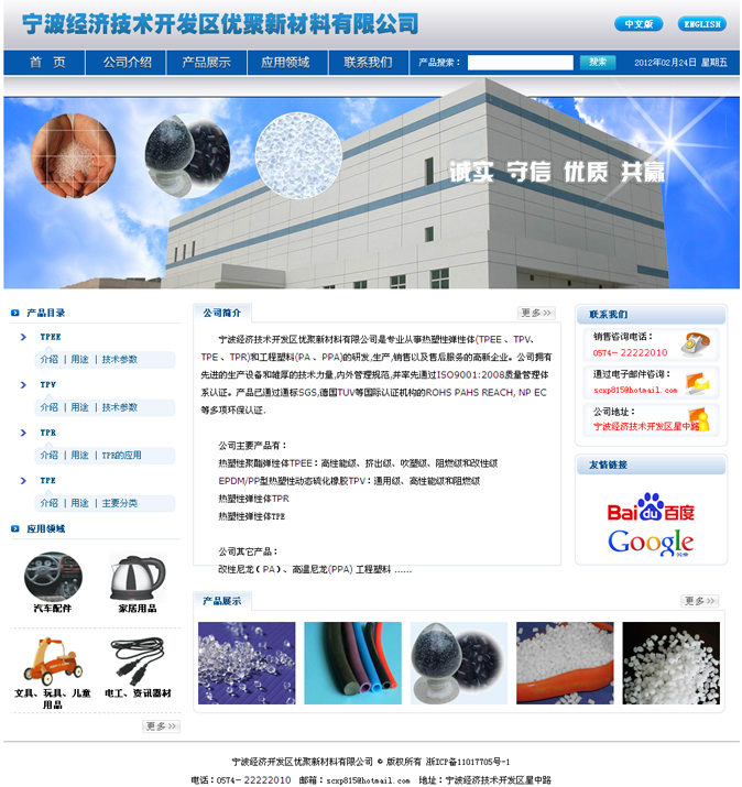 新材料生产型企业网站案例-宁波经济技术开发区优聚新材料有限公司